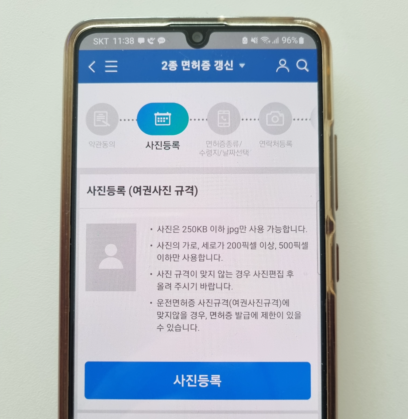 또 갱신 시 기존에 등록돼있는 사진과 동일한 사진은 사용하실 수 없습니다.