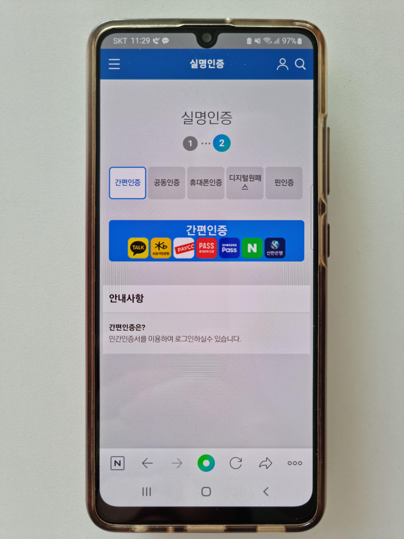 다음은 실명인증 단계입니다. 저는 쉽게 휴대폰 인증을 이용했습니다. 문자로 인증하기로 해서 휴대폰 번호와 인증번호만 입력하면 간단히 인증 가능합니다.